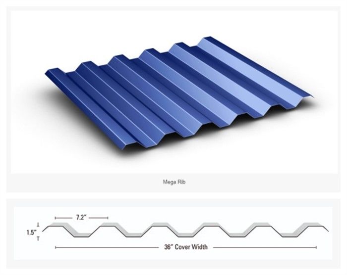 মেগা-রিব একটি 7.2 এক্সপোজড ফাস্টেনার প্যানেল যা সর্বোত্তম শক্তি এবং বিস্তৃত ক্ষমতা সরবরাহ করে। মেগা-রিব একটি ধাতব ছাদ এবং প্রাচীর প্যানেল যা শিল্প ও বাণিজ্যিক অ্যাপ্লিকেশনগুলির জন্য সমানভাবে উপযুক্ত। অনুভূমিকভাবে ইনস্টল করা, মেগা-রিবের সাহসী পাঁজরগুলি আর্কিটেকচারাল স্টেটমেন্টকে পরাস্ত করা শক্ত করে provide